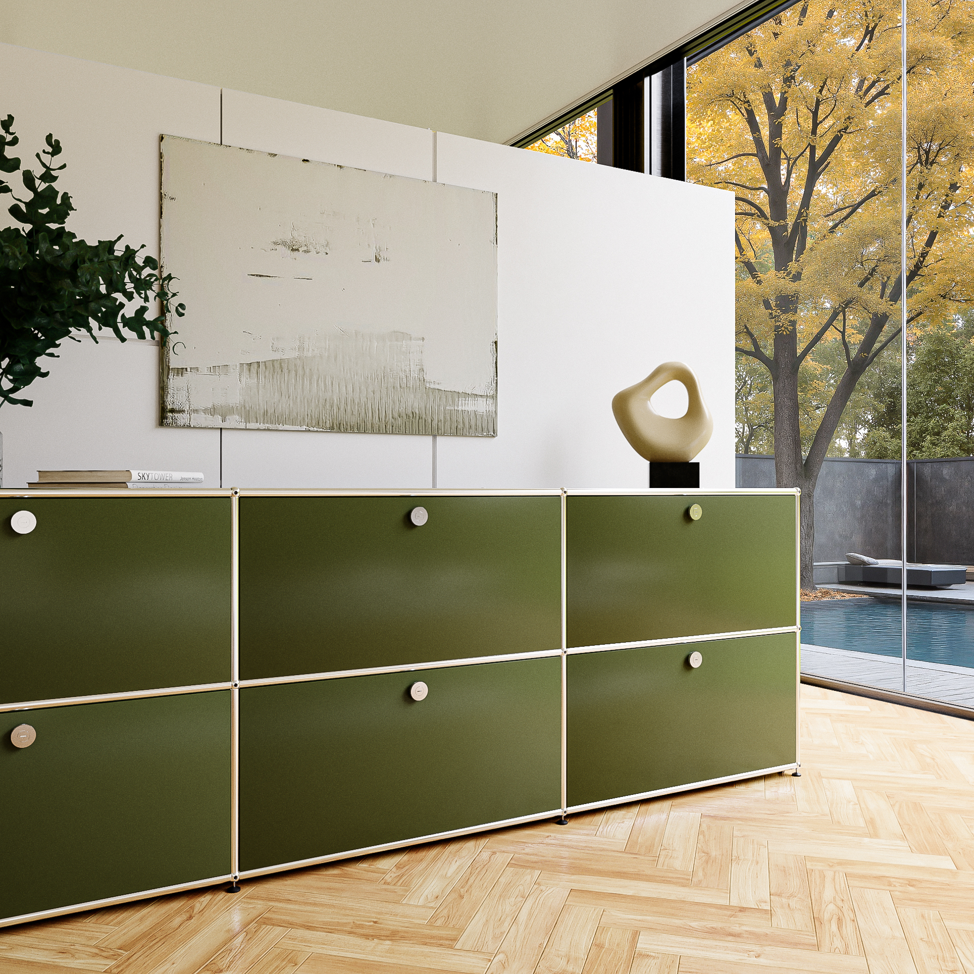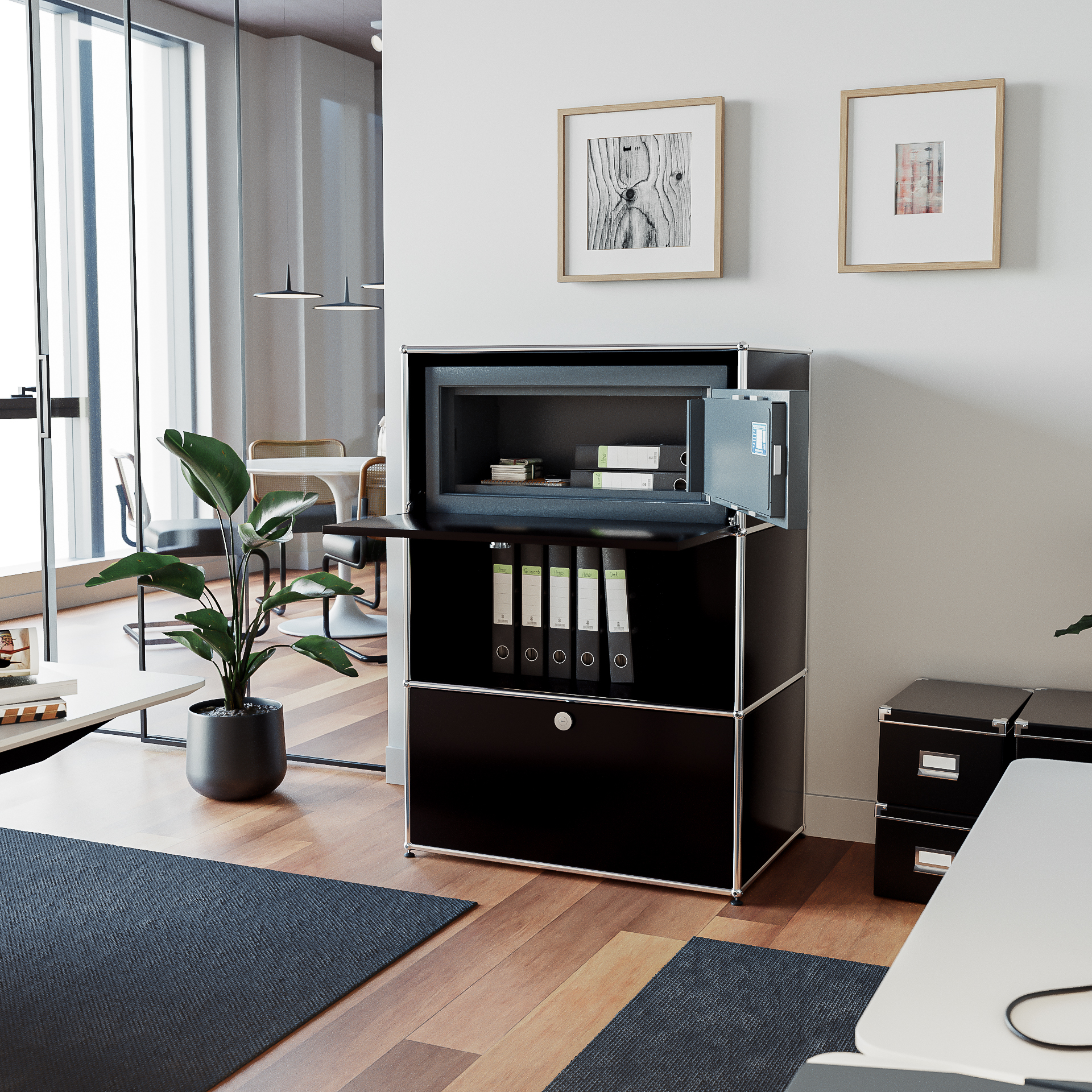 • Passt perfekt in Systemmöbel wie USM Haller