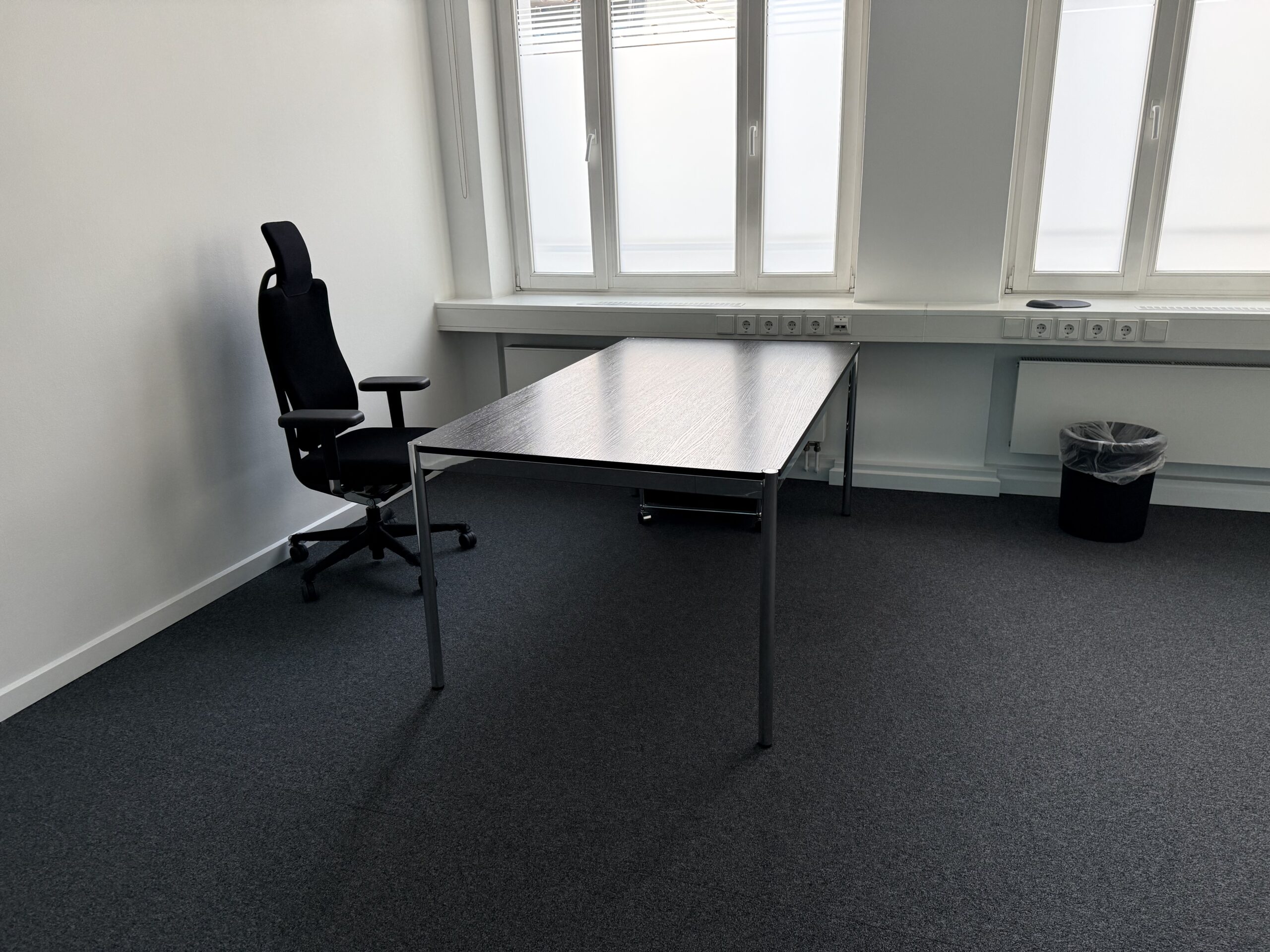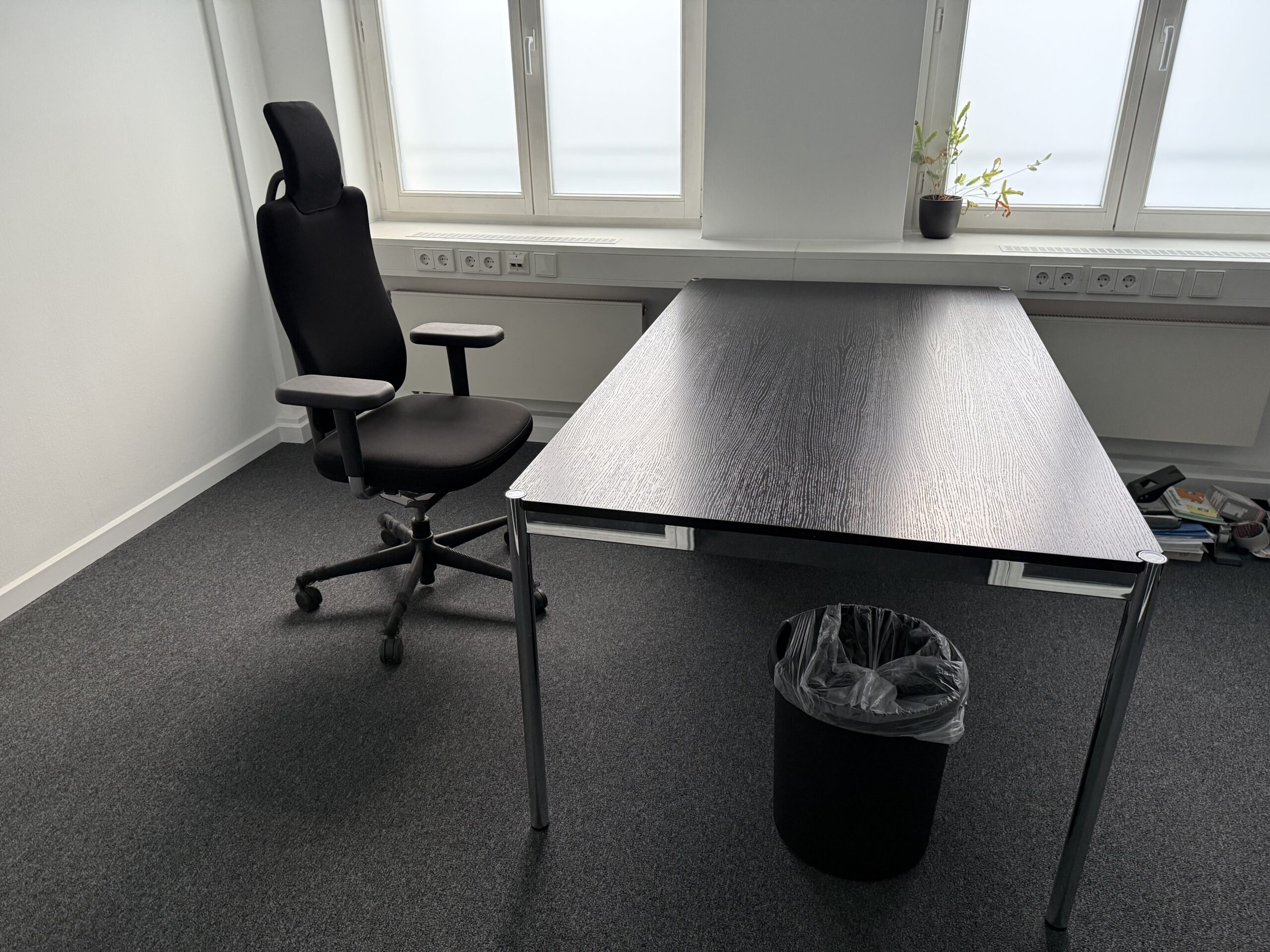 Wir bieten hier das perfekte Office Starter Set zum Verkauf an, bestehend aus einem USM Haller Tisch (175 cm x 1m) mit einer Platte aus schwarzer Esche, einem Vitra Headliner sowie einem USM Haller Rollcontainer in schwarz. Alles befindet sich in einem sehr guten Zustand!
